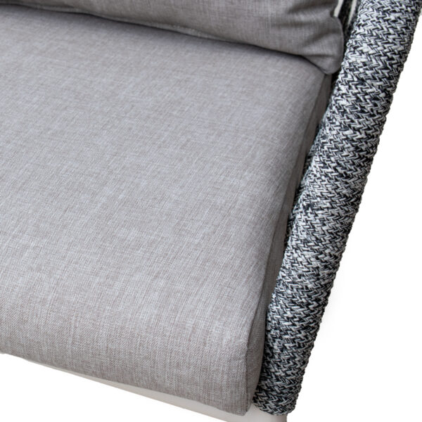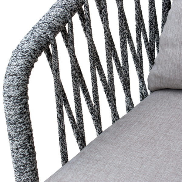 El Comedor Barcelona invita a vivir el exterior con la calma y la belleza del Mediterráneo. La mesa, cálida y elegante, se convierte en el punto de encuentro para largas conversaciones bajo la luz dorada de la tarde. Las sillas, tejidas a mano y cojines suaves, abrazan el cuerpo con una comodidad que se siente natural, ligera… casi veraniega.
