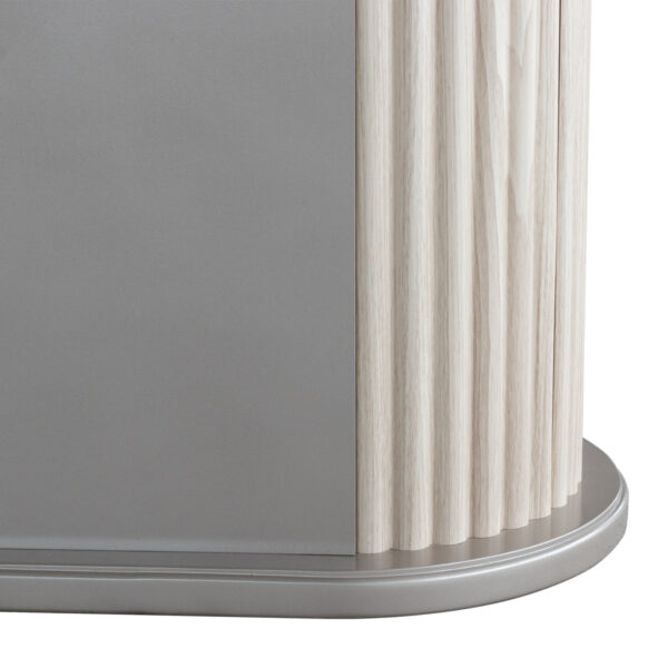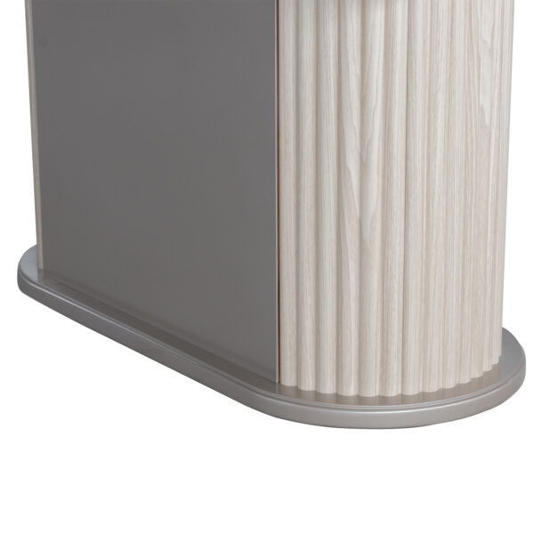 - Material de Top: Vidrio laminado color beige de 12 mm de espesor, compuesto por una lámina de seguridad interna que, en caso de rotura, evita que el vidrio se desprenda o estalle, mejorando la seguridad y resistencia estructural.