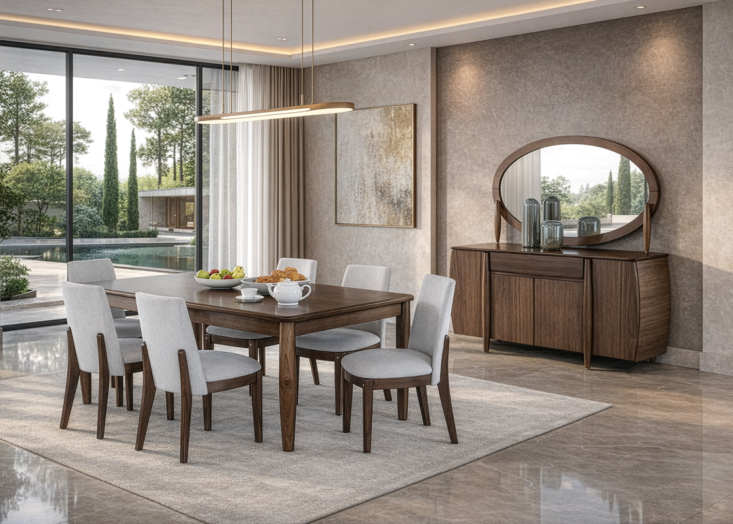 - Cuerpo: Base principal de poliéster. La composición específica depende del tipo de tejido (chenille, lino sintético, microfibra, entre otros). Tapiz resistente al uso diario y fácil mantenimiento.