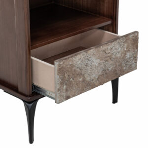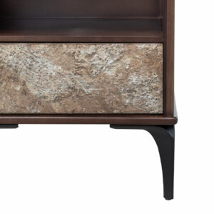 ACABADOS CON LACA POLIURETANICA LIBRE DE PLOMO, APLIQUE DE PIEDRA, PATAS METALICAS, MADERA DE TECA, TABLERO MDF Y MDP MARFIL, TABLERO MDF, LUZ LED |