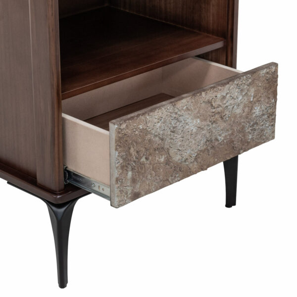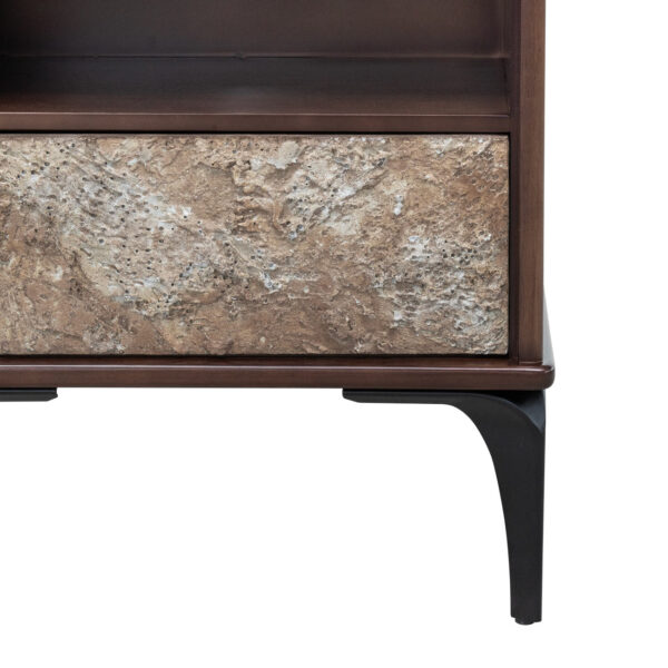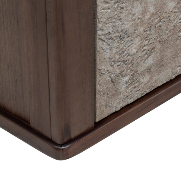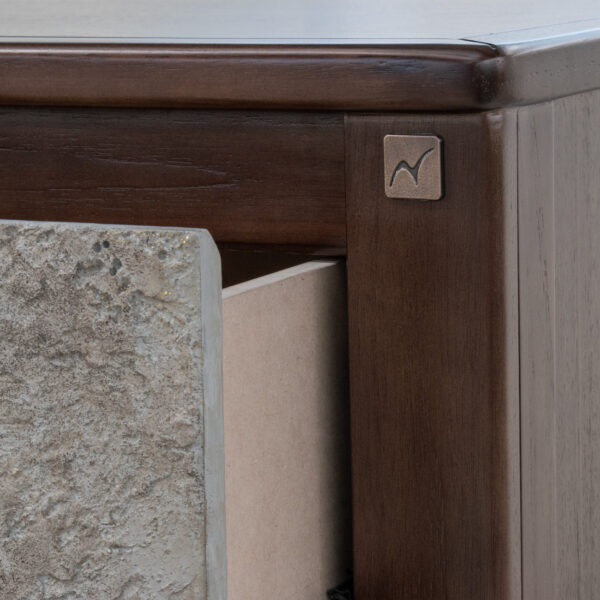 ACABADOS CON LACA POLIURETANICA LIBRE DE PLOMO, APLIQUE DE PIEDRA, PATAS METALICAS, MADERA DE TECA, TABLERO MDF Y MDP MARFIL, TABLERO MDF, LUZ LED |