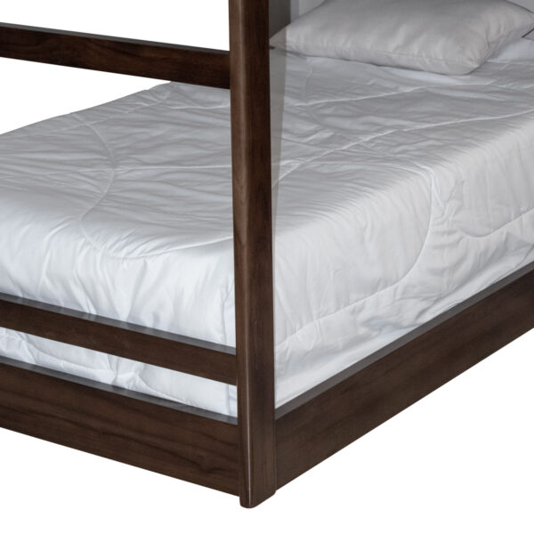 Litera fabricada en madera de teca, reconocida por su resistencia y durabilidad. Su diseño moderno y minimalista aporta estabilidad y elegancia, con líneas rectas y estructura sólida. Una opción funcional y estética para optimizar espacios sin perder estilo.