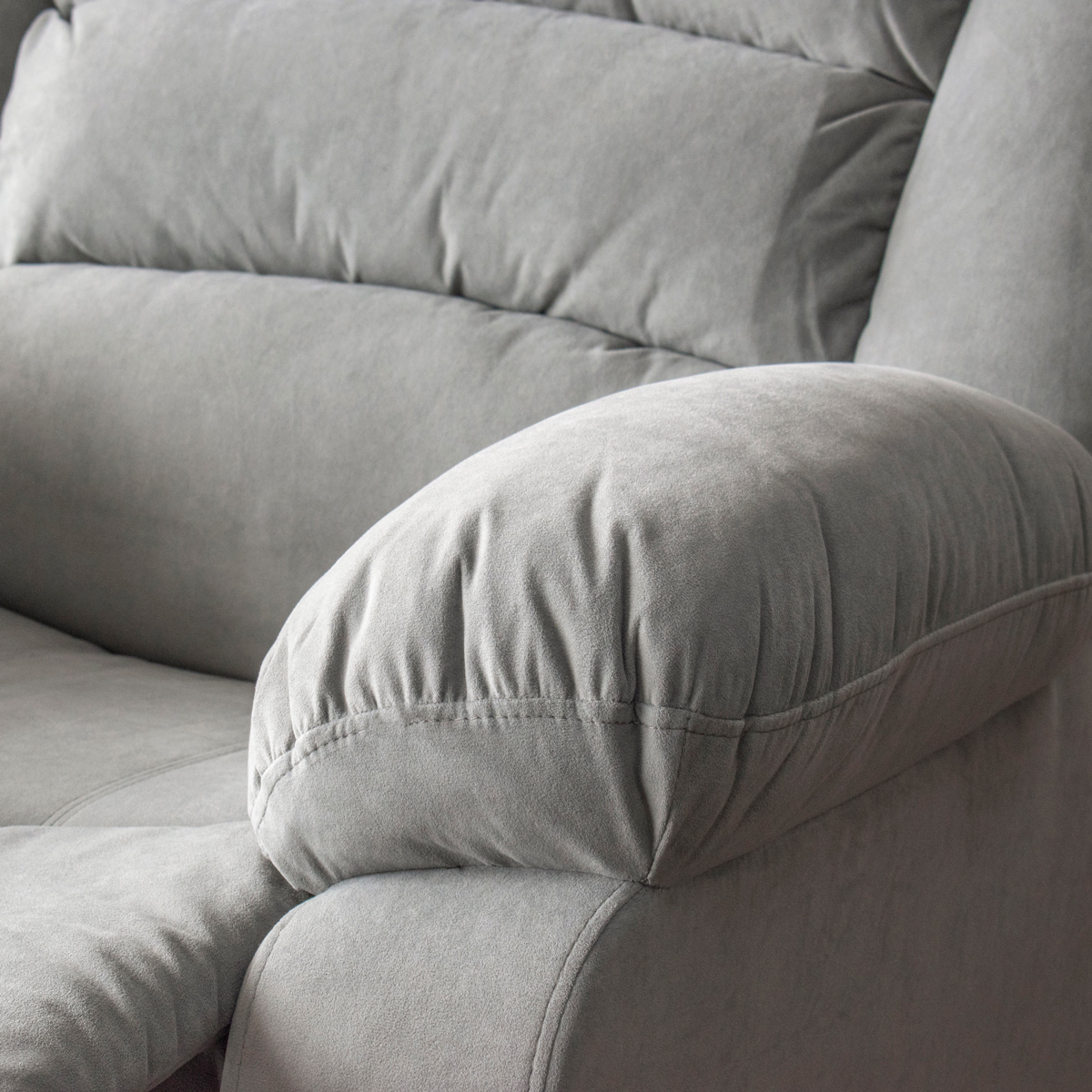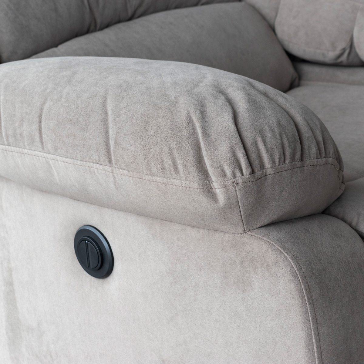 El sofá triple Misuri ofrece confort premium con su sistema reclinable eléctrico, que permite ajustar la posición de manera suave, silenciosa y precisa. Tapizado en terciopelo café, aporta una textura elegante y cálida que realza cualquier sala.